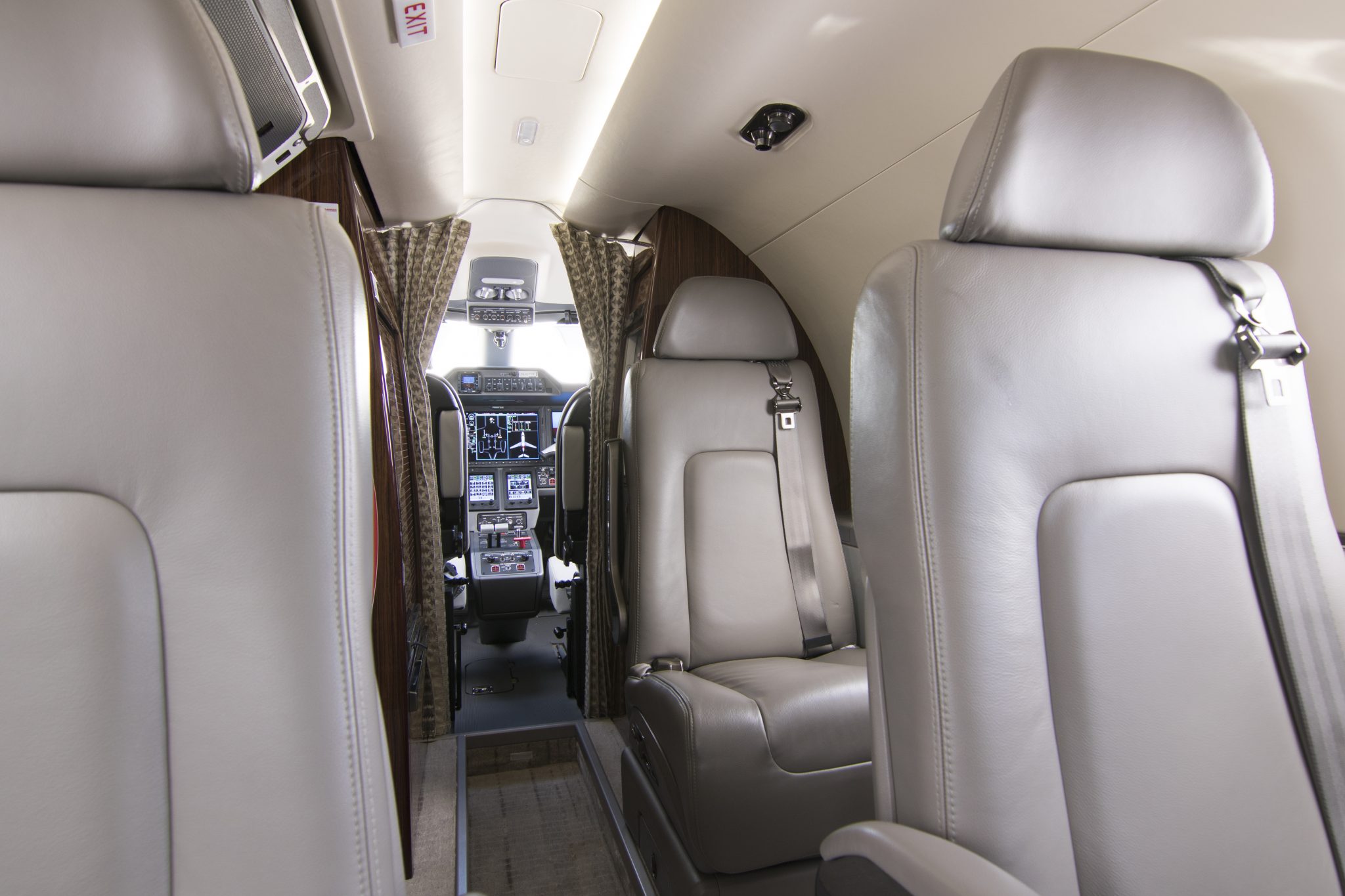 In the early model Phenom 300s, Embraer gave the option to have an extended right-side galley and 6 VIP seats, or to have a shortened right-side galley and 7 VIP seats. When it comes to resale, the 7 seat cabin is the preferred configuration, because the majority of users would rather have the ability to fly with more passengers on board than have the extra storage space that the longer galley offered.