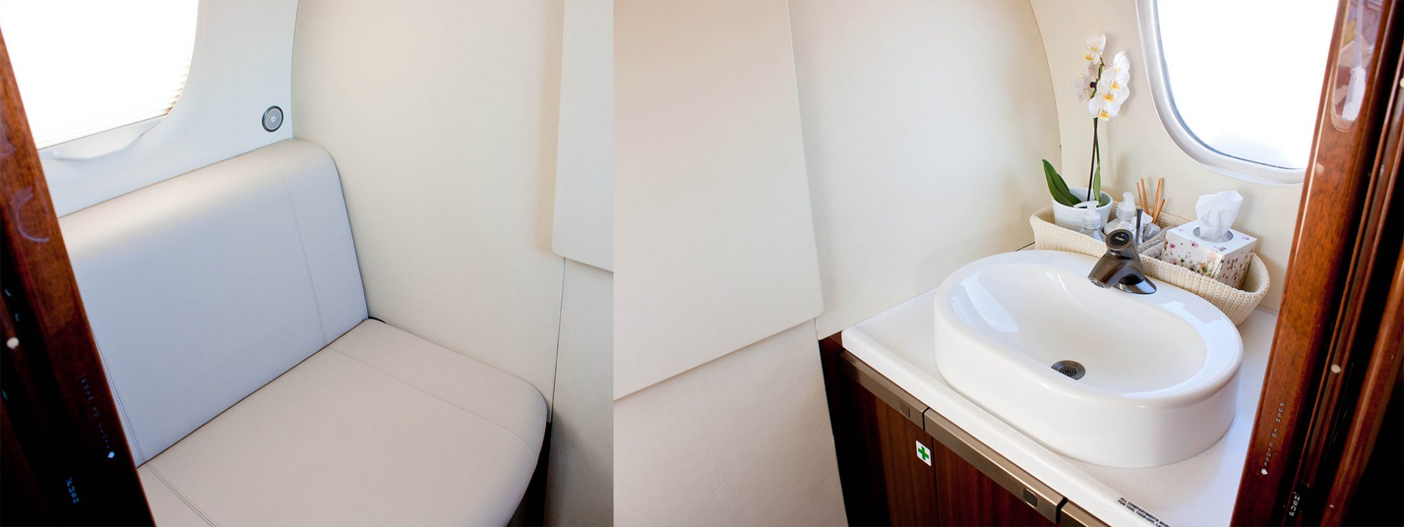 Some of the later model Phenom 300s have a belted lavatory. Embraer did not offer this when they first built the aircraft. Most people prefer the belted lavatory but it will not bring an increase in resale value.